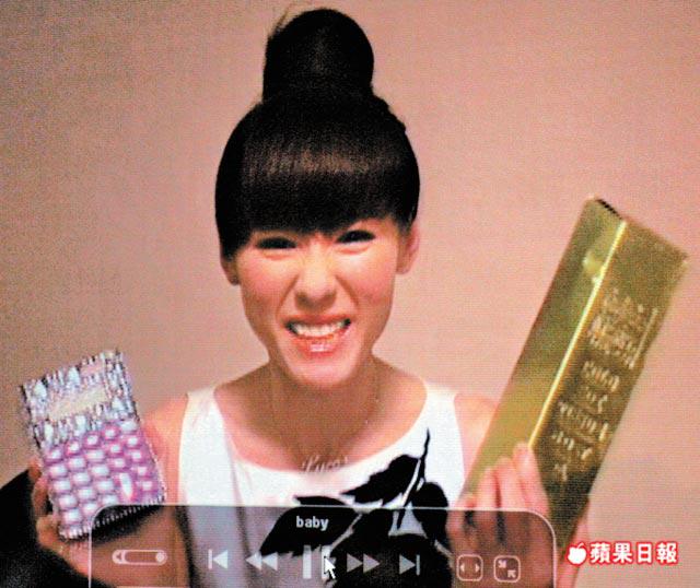日牌mercibeaucoup,因可愛鬼馬的童真元素、立體繽紛,備受明星及少女歡迎,阿嬌到藝術中心上堂也着上,但揀了黑底白公仔,而放棄更搶眼的colorprint款式,甲油也以nudecolor為主。總體打扮繼續由頭蓋到腳,但她紮起頭髮、拉高手袖,一副打起精神模樣,已較前醒神。