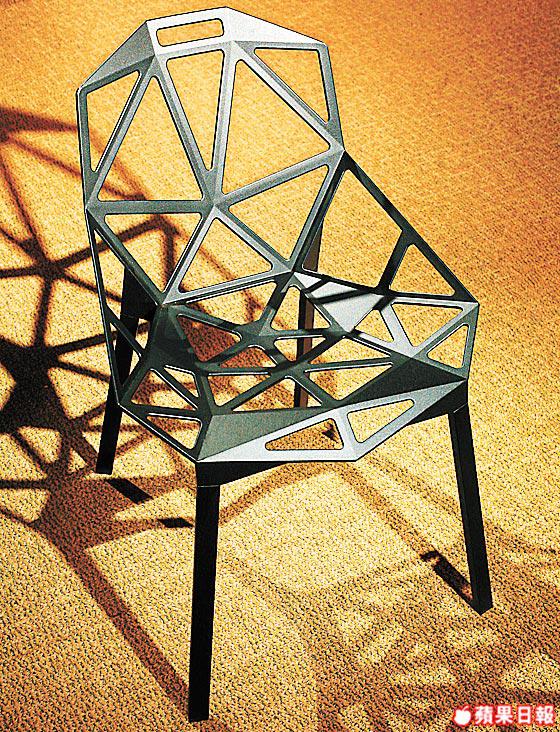 KonstantinGrcic設計的ChairOne,整個椅背至座位以幾何圖案為主題,當射燈投射落去時,幾何投影落地面或牆身,極具氣氛。(82×54×59cm)