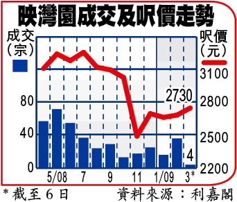 映灣園現有約900個二手放盤,兩房戶佔300個,扣除可望海叫價較高的單位,兩房戶叫價平均每方呎2600元。