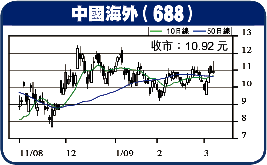 688中國海外 收市:10.92元