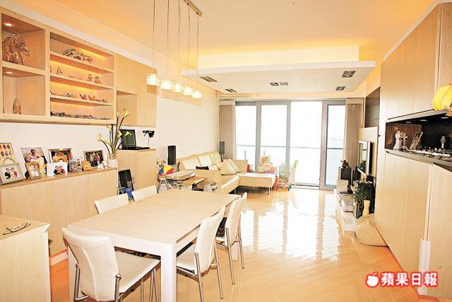 單位屬長廳設計,好處是客飯廳大小可自由分配,比日字廳更具佈置彈性,缺點是飯廳無窗。3房間隔四正,其中套房不設窗台,採落地窗設計,盡顯氣派,可惜入口有長走廊,美中不足。全屋裝修費近100萬元,包括更換地板及訂做全屋家具。另擴大了套房浴室,拆去間隔牆,改以玻璃取代,空間感大為提升。