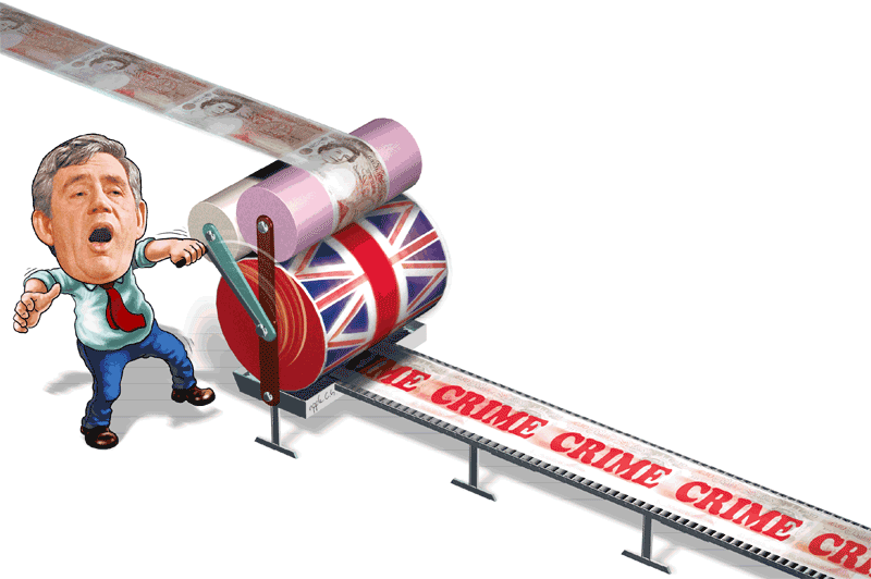 銀行如惡棍一般騙人血汗錢,不是新聞,英國有歹徒則仿效銀行「搵錢絕招」──「印銀紙」。英倫銀行上周宣佈「印銀紙」救市,偽鈔集團兩名成員聞訊,笑說:「我們搶先一步了!」