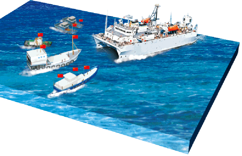 中國船包圍美軍偵測船示意圖