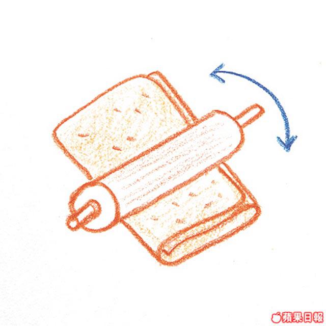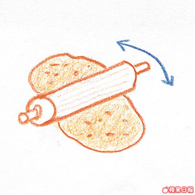 3.鋪上另一塊較大的雲吞皮,將多餘空氣壓出,然後用圓模裁成圓形。