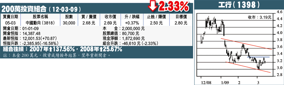 滙控U盤風波鬧大,看來有些人暫時要收斂一下。不過正如前日所說,內銀股沽空盤不斷增加,看來有心人或已轉移目標。日前提過建行(939)保歷加通道已收得極窄,遲早行單邊市。另一隻內銀股工商銀行(1398)最近兩個多月其實亦是波幅日窄,相信不久將有突破,宜留意其動向,破位可以跟勢造。