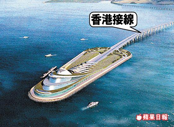 港珠澳大橋今日會與承辦商簽署初步設計合約,主體大橋長29.6公里,包括6.75公里長海底隧道。本港會在赤鱲角機場東面建造130公頃人工島,作為大橋落腳點,設有口岸設施,除供港珠澳大橋車輛出入境用之外,研究中的港深機場鐵路亦會共用口岸。