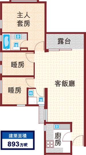 建築面積:893方呎