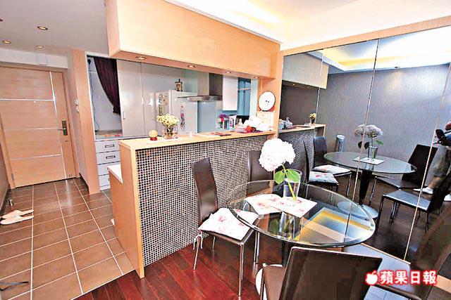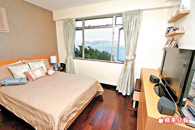 大廳以長形設計,並以「隱形門」將走廊位收藏,令面積更見闊落,單位向東,推開客廳趟門即達露台,站在露台上可享鯉魚門一帶開揚海景,山海連天,難得在市區得享悠閒。為擴闊空間,業主改為半開放式廚房,附設有小型吧枱,並地盡其用在廚櫃內加建工人房。飯廳牆身裝置灰鏡,設計時尚形格,主人套房寬敞舒適,睡床置中可兩邊落床,景觀同享海景。另一睡房以粉紅色為主調,佈置成小公主天地。