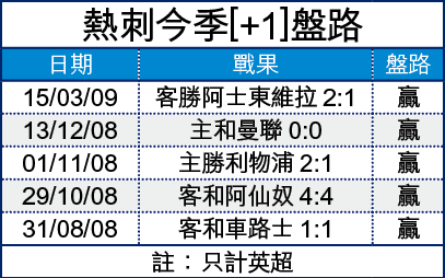 那隊是英超攔路虎?愛華頓?韋斯咸?不,真正的攔路虎早已現身,那就是熱刺。該倫敦球隊是今季唯一在聯賽對Big4不敗,而今季「讓球主客和」[+1]盡皆贏盤。
