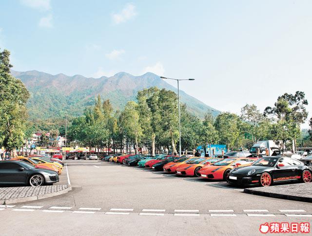 如遊車河般令到睡魔Call機狂響,慢溜到大美篤巴士站後,卻即時被眼前景象所嚇醒。偌大一個錶位停車場,擺滿大細林寶、拉利360同430、波子GT2同GT3等歐系超跑,唔使逐架數都知起碼過百部,係咁意當每架值二百萬,閒閒哋成兩億泊喺錶位。