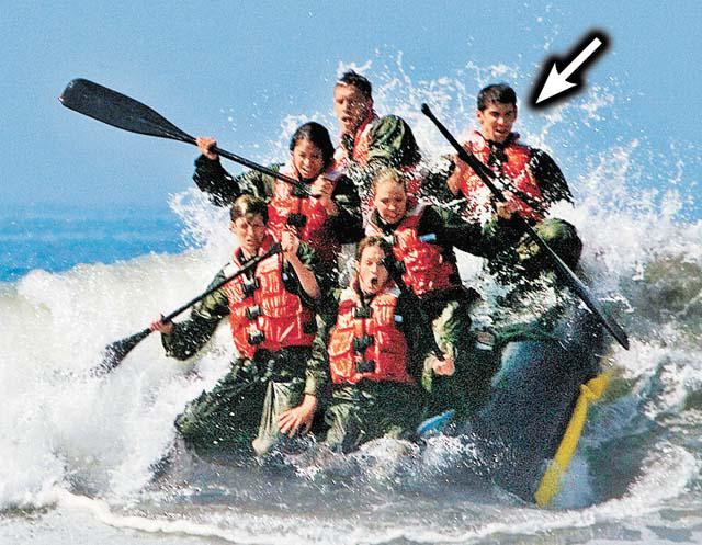 當天沒有人是明星,也沒有所謂金牌選手,費斯也趴在地上滾爬,並與隊員合作拉動橡皮艇衝向海中,在驚濤駭浪中與成員同舟共濟。之後,他們還在溫度只有攝氏14.4度的太平洋中游泳,難怪17歲的塞頓興奮不已:「這不是單純的游泳,周遭都是極力爭勝的挑戰者,這經驗讓我畢生難忘。」不幸的是,25歲的背泳女將珍迪姬,在操練中撞傷腓骨。