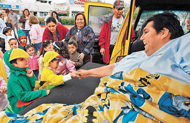 全球最重的大肥佬烏里韋(ManuelUribe)前日(周五)終於可走出家門,躺上度身訂造的汽車上,與妻子恩愛拍拖遊車河。