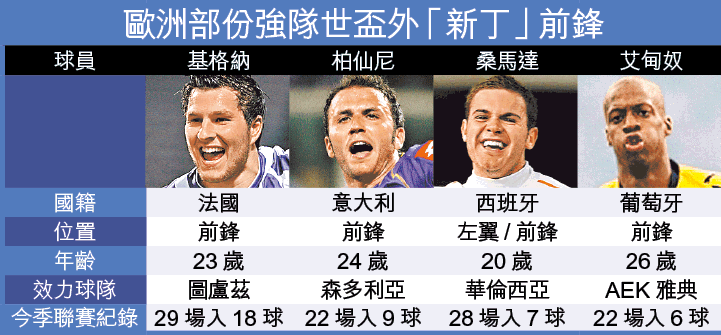 畢竟世界盃歐洲區外圍賽仍屬前段,部份強隊仍有「本錢」試新人,今輪賽事中,法國、意大利、西班牙及葡萄牙各有新丁前鋒入伍。