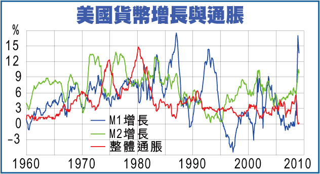 問題是這樣狂印銀紙究竟會否引發超級通脹。從半世紀歷史可見,美國M1、M2增長長遠大致與通脹脗合(圖)。但短期來說,貨幣增長卻不時與通脹背馳,甚或無關,以某幾年內M2增長與通脹之間的關係尤為明顯,因通脹是滯後指標。印鈔製造的是銀紙通脹,由央行與銀行之間的銀紙通脹變成銀行與企業之間的信貸通脹,再到企業與百姓之間的貨物通脹,一般需時幾季至幾年。
