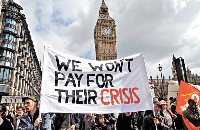 3)金融愚人節遊行:分別從四個地鐵站展開,最後在英倫銀行滙合一起
