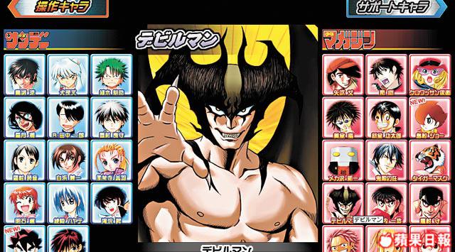 《SundayVSMagazine集結!頂上大決戰》中嘅Sunday,即係《周刊少年Sunday》,Magazine即係《周刊少年Magazine》。呢隻Game係紀念呢兩本漫畫周刊創刊50年、由Konami開發嘅。包含兩書內超過30套作品,除上段提過嘅,仲有《犬夜叉》、《史上最強弟子兼一》、《植木之法則》、《再造人009》、《閃靈二人組》等等,漫畫人物Crossover隻揪隻,經典必殺技一一重現眼前。而有啲人物,好似《鐵拳浪子》嘅平叔、《惡魔人》嘅飛鳥了,則係打緊時㩒L加「□」掣叫出嚟幫拖嘅輔助角色。小朋友梗係玩得開心,有番咁上下動漫年資嘅,更加感受到一份男人嘅浪漫,你睇,矢吹丈有招必殺技係坐喺張凳度,仲有SpotLight射住,嘩!我又起雞皮喇!
