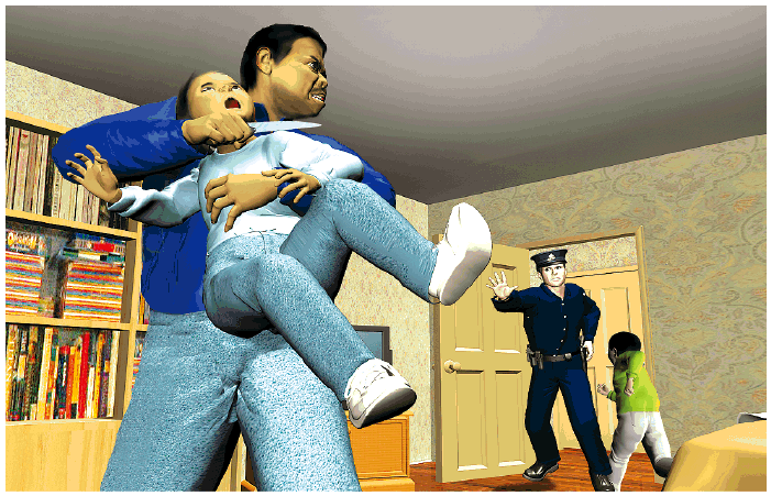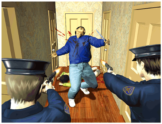 警員喝令雷弗爾勒斯停手和放下武器,但他不理會,更持刀追斬二妹薩拉菲娜,二妹捱刀倒地。這時,另外四名警員到場增援,當中兩名警員見狀開槍,雷弗爾勒斯中槍倒地,仍緊握兇刀。二妹手、腹和腳部受傷,送院時哭着大叫媽媽,須留醫。