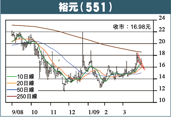 昨天突掉頭回升,成交急增,相信破旗後很快會再試位處18.55元的250日線,成交若維持暢旺,破關機會高於一半,向上目標20元。