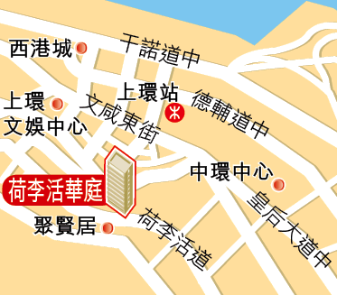 上環乃港島早期發展區域,迄今仍唐樓舊廈處處,僅極少數重建項目,才可罕有地提供小型屋苑式住宅,荷李活華庭是其中一組,坐擁最接近中環商業區的地利,沿皇后大道中步行10分鐘即抵中區心臟地帶,經上環內街前往港鐵上環站,亦不過5分鐘路程,乃區內較具規模的重建項目中,最近港鐵站之選。