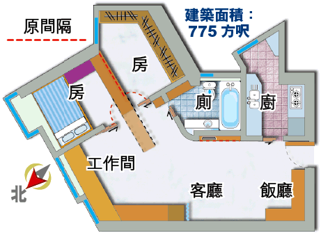 A座高層C室面積:775方呎 叫價:500萬元 呎價:6452元