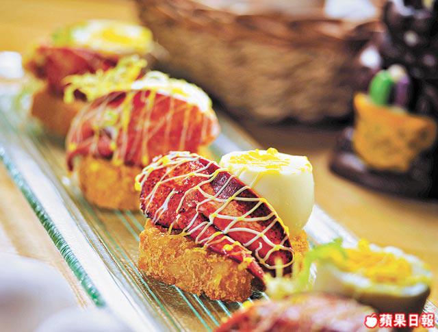 復活節一定要有復活蛋,御花園的自助餐今年便以「蛋」做主題,配上龍蝦等食材炮製出多款美食。復活節最高興一定是小朋友,御花園下午茶自助餐(成人$158、小童$98),小朋友除了獲贈精美禮品一份,更可參加「親子樂滿Fun復活節嘉年華」,節目有親子曲奇製作班,由師傅教導爸爸、媽媽及小朋友,一同炮製屬於「我們這一家」曲奇餅,完成後還有證書一張。晉餐期間,又有小丑扭出各款形狀可愛的氣球,大大隻賓尼兔還會隨時出現身邊,跟大家拍照留念。御花園晚上又會變身成海鮮樂園,其復活節海鮮自助晚餐(成人$358、小童$258),必食有阿拉斯加蟹腳及澳洲泥蟹等海鮮。
