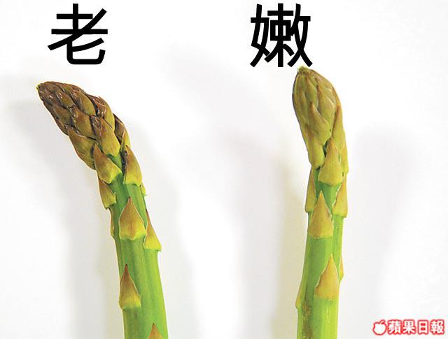 見到蘆笋的頂端青綠且包得緊便是嫩;變黑或已鬆散,便已經老了!