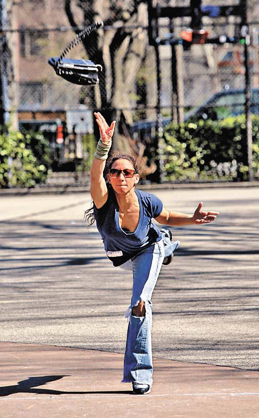 被裁員,一肚氣。美國紐約舉行「失業奧運會」,40名失業者透過擲電話鬥遠(圖二)、擊破吊在樹上的彩罐等比賽,消消怨氣。比賽獎品不是金牌,而是餐廳和酒吧贈券,也可苦中作樂。