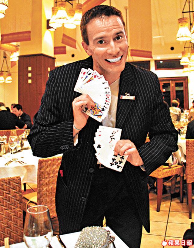 世事豈能盡如人意,當我吃到第三碗水雲時,村長Fred突然走到我身旁,拿出一副撲克牌,hay,我的十三張技術一般喎!怎知,他竟是玩魔術,先叫我抽一張牌,放一隻玻璃杯在牌上,又再放多一張牌在杯上,拍一下手,兩張牌竟然掉轉了位置,快得連我與水杯只有三吋距離也看不到!