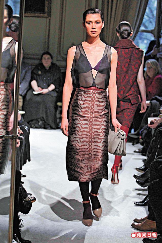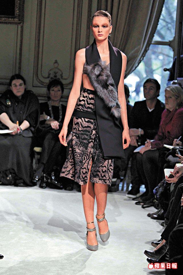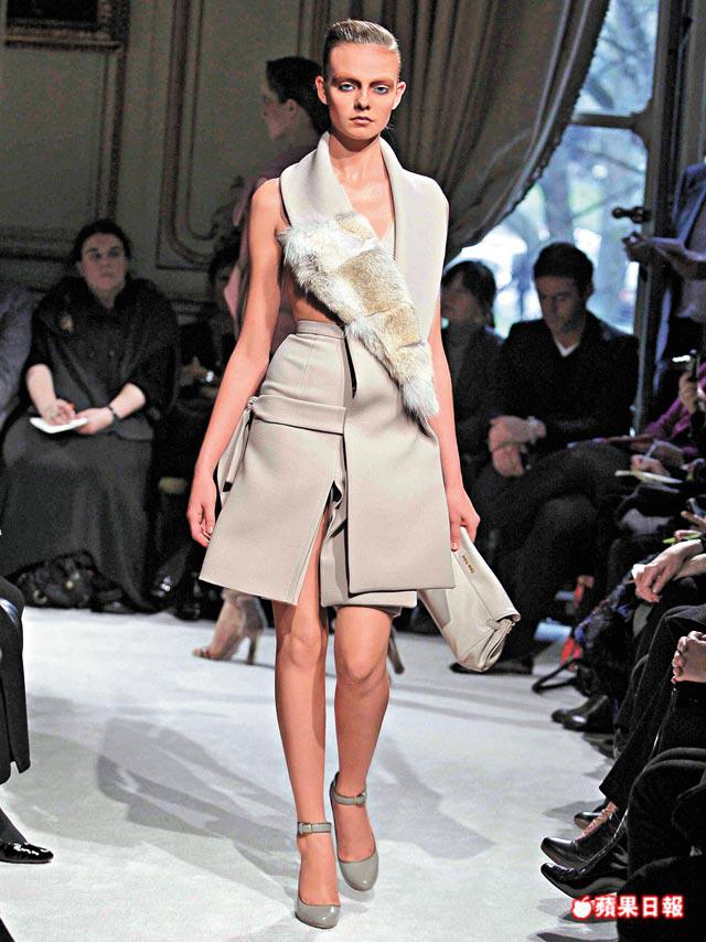 這是個糅合了男裝dandy、內衣(bra)fetish,以及在解構科目中展現揮灑功力的系列,色水是只有用在Prada兩姊妹上才work的不討好啡與vintagered,而顛覆的是MiuMiugirls身穿鬆墮的衣裳,總是未有整理外衣露bra,最貼身的2ndskin景致開揚,蔽體的反而是一條longfurscarf。