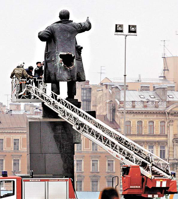 矗立在俄羅斯第二大城市聖彼得堡的列寧像,昨天遭人蓄意破壞,炸開一個大洞,銅像有倒塌危機,當局正搶修。