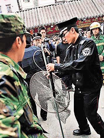 「不要和他下棋!」廣州市天河區一名年約30歲、頭髮蓬亂的流浪漢,不滿民眾不肯和他下棋,於是拿出菜刀胡亂揮舞,其後更割手自殘,與接報到場的公安對峙3小時,公安其後出動魚網將其制服在地,綁上手腳,抬上擔架。由於男子疑似精神有問題,公安將他送院。廣州《信息時報》/《羊城晚報》