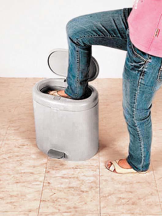 「踏踏樂壓縮式垃圾桶」可讓使用者輕鬆踩壓垃圾,節省垃圾袋空間與減少使用垃圾袋。
