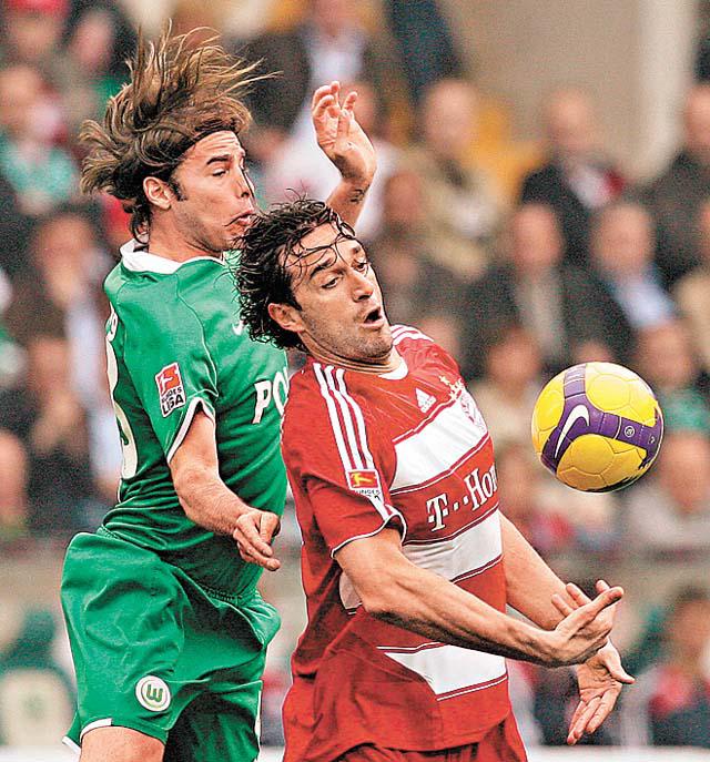拜仁前鋒東尼(右)被禾夫斯堡巴沙利緊纏,結果禾夫斯堡憑迪施高及加菲迪各梅開二度,以5:1大炒拜仁。法新社