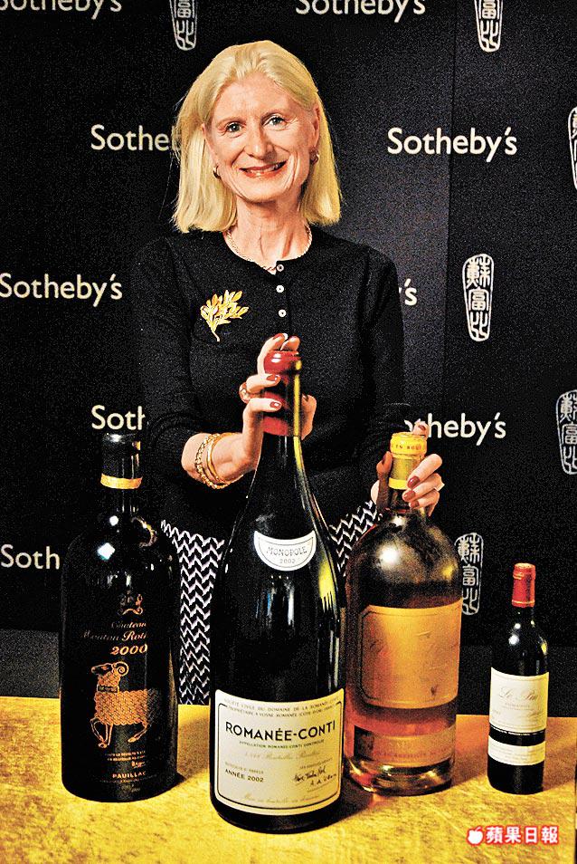 【本報訊】今朝有酒今朝醉,明日愁來明日當。金融海嘯陰霾下,蘇富比首次在港舉行的紅酒拍賣,總成交價近5,000萬元,高出預期逾一倍。其中法國波爾多ChateauLatour的1961年6公升裝「酒王」,以48萬元成交;而最貴的「連拍組合」是1996年RomaneeConti,成交價逾130萬元,由亞洲收藏家投得。