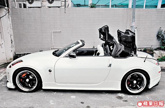 Tino終極目標係收齊全套Skyline。屋企已有R32、R34、R35,R33亦將成囊中物,但最難買嘅R30,日本賣家開天索價180萬,真係幾有錢都俾佢拋窒!「集郵」不成,惟有將心思轉向另一愛驅Fairlady350Z。買入3年,從未停過幫佢扮靚靚,胎軨、包圍、桶椅等,全部刻意玩撞色效果,早幾日先同車房師傅諗計,加條黑膠落車尾。