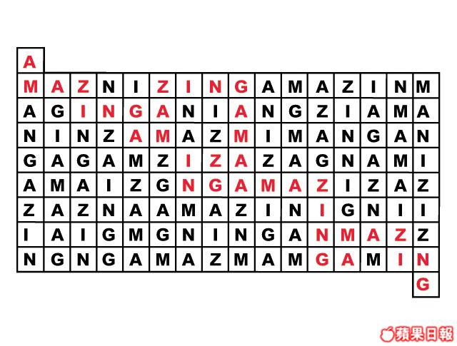 懶羊羊被灰太狼捉走,喜羊羊前去營救時誤闖迷宮,牠必須依照「AMAZING」的串法連續走,水平或垂直移動,不能斜線而行,由入口A走到出口G。