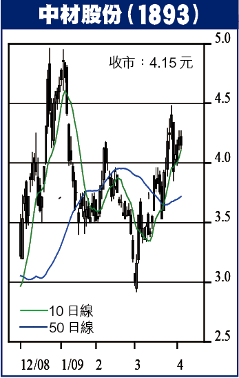 覆讀者張小姐:中材上日收4.15元,跌1.4%,股價暫在10日線上運行整固,短線阻力位4.48元,守穩3.80元可伺機向上破關,破位將推向4.90元,可考慮作中線持有,跌穿3.70元沽出止蝕。