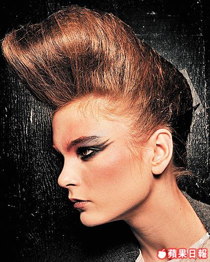 眼部妝容一味要誇,夠粗且誇張眼線配合多重眼影,讓眼影及眼線看來似有層層突出的效果。