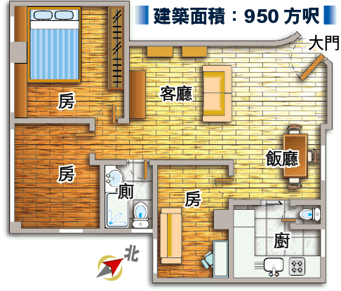 嘉寶園中層C室面積:865方呎 叫價:650萬元 呎價:7514元