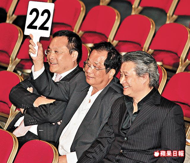 ▲只值幾千萬嘅上水細地,只合小發展商脾胃。好似22號牌嘅就係上水地膽灝康物業代理老細蘇開鵬,拍埋第一太平戴維斯大佬李偉文(圖左)同新界王張人龍第二代張德熙(右),拍賣期間有講有笑,差唔多由頭帶到尾,開頭至中段由蘇老闆主力舉牌,到後段唔知係咪有啲手軟,就pass個牌畀李偉文玩吓,之後又質畀張德熙,但張德熙怕醜唔肯舉,由蘇老闆埋尾,最後輸咗畀科達。