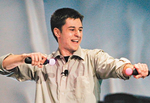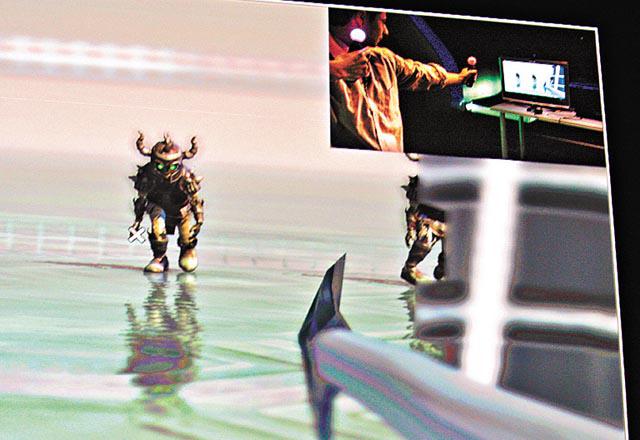 新力前日又展示一款光學動作感應手掣,挑戰任天堂的Wii。玩家拿着手掣,即可當作球拍、球桿、劍、流星錘、鐵扇、雷射光鞭等來玩遊戲。法新社