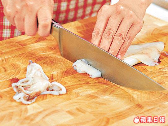1.將蝦、帶子及青口洗淨抹乾;魷魚洗淨後切成圓圈;魚柳切塊;洋葱去衣切成碎粒;番茄、蒜及薑也切成碎粒。