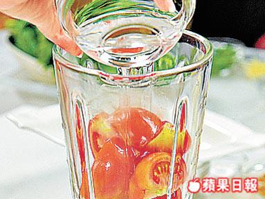 2.洋葱去衣洗淨後切碎;番茄放入攪拌機,加半杯水攪碎。