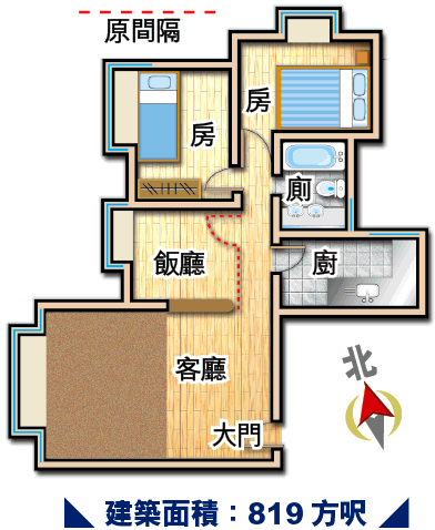 建築面積:819方呎