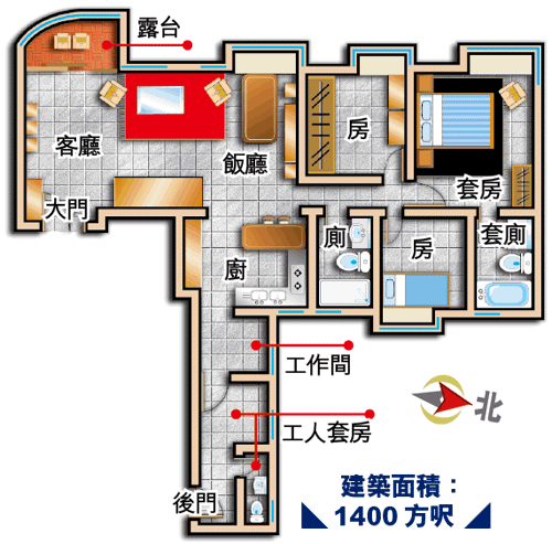 建築面積:1400方呎