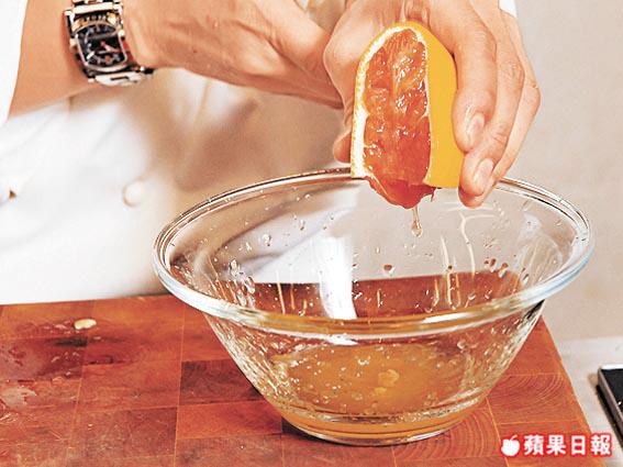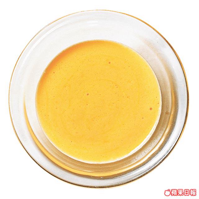 材料:西柚/橙/檸檬各1/4個(榨汁)、青檸1/2個(榨汁)、蛋黃2個、無鹽雞湯4個、鹽/胡椒粉各少許