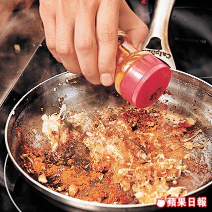 材料:黃咖喱粉/日本玫瑰醋/洋葱碎各2湯匙、黃薑粉/糖各1/2湯匙、香茅2條(只要白色部份,切片)、蒜茸11/2茶匙、乾葱碎/魚露各1茶匙、橙汁1/2個(榨汁)、南薑茸1湯匙、青瓜半條(切厚片)、芫荽2棵、鹽少許