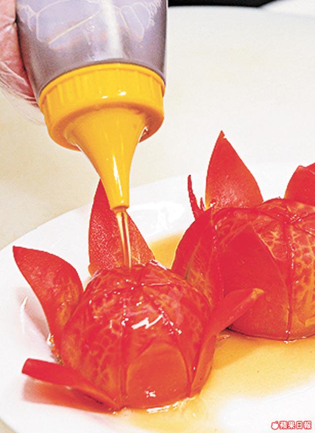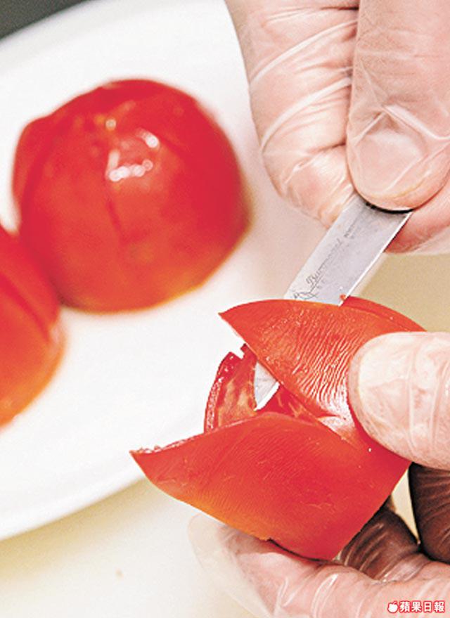 番茄拖滾水2秒便夠,否則番茄熟了便不爽口。