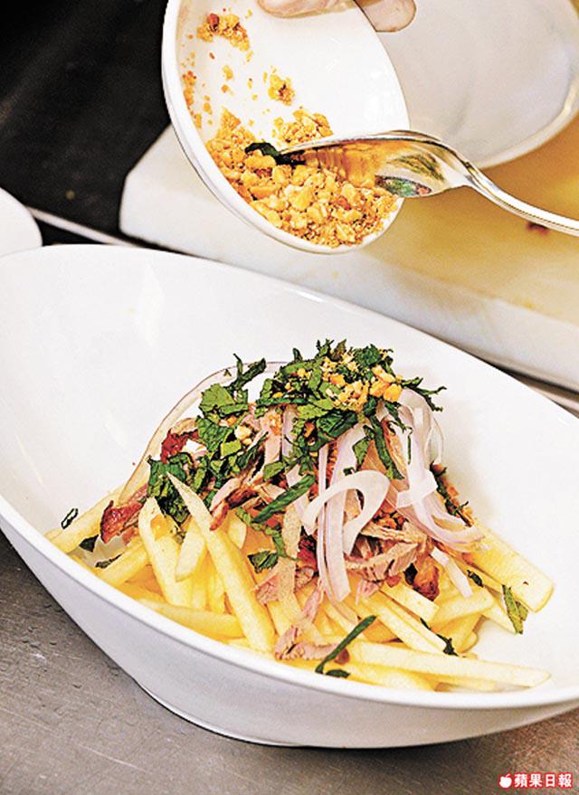 青檸、金不換與魚露混合成最越南味的沙律汁,令香口的燒鴨肉和爽脆的蘋果,都變成令人口水直流的材料,夏日妙品!