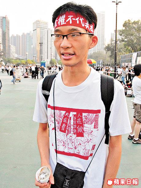 年屆40嘅丁先生預先着一件7.1遊行T恤,八方問佢仲有幾個星期先到7.1,點解咁心急呢?佢話香港人7.1上街爭取民主嘅精神,同當年北京學生要求國家民主化一脈相承,所以着呢件衫十分適合,佢話03年首次上街因為好憎老董,今年會再遊行,因為好不滿煲呔。